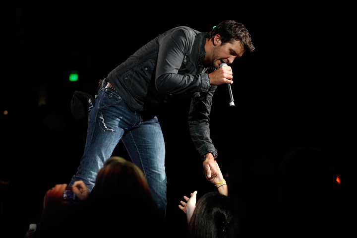 Luke Bryan greeted those fans lucky enough to be up front and close to the stage during his set of songs which included "Country Man" from his debut album and his number one hit "Do I" from his Doin' My Thing disc.